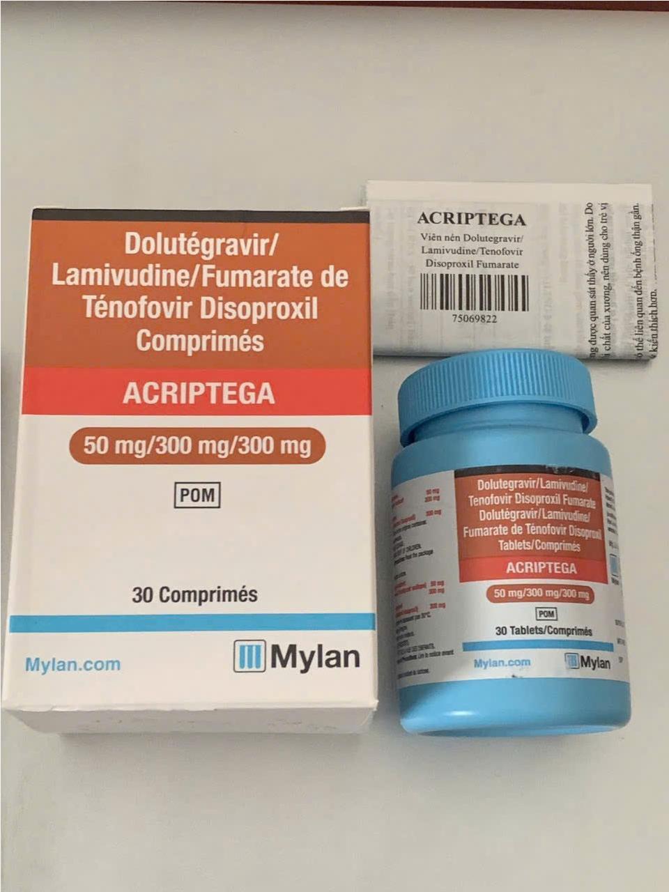 Thuốc Acriptega là thuốc kháng vi rút HIV do công ty Mylan sản xuất và đã được Bộ Y tế Việt Nam cấp phép chính thức vào tháng 11/2019.