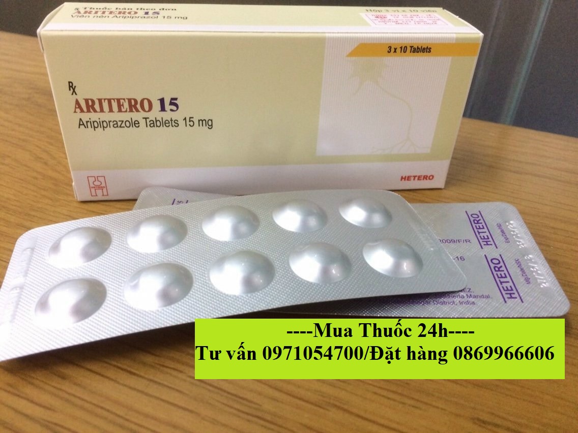 Aritero 15 là thuốc gì? Thành phần: Aripiprazole 15mg Thương hiệu: Aritero 15 Hãng sản xuất: Hetero Ấn Độ Thuốc Aritero 15 (Aripiprazole 15mg) chỉ định cho đối tượng bệnh nhân nào? Aripiprazole được sử dụng để điều trị một số rối loạn tâm thần/tâm trạng (chẳng hạn như rối loạn lưỡng cực, tâm thần phân liệt, hội chứng Tourette và cáu kỉnh liên quan đến rối loạn tự kỷ). Nó cũng có thể được sử dụng kết hợp với các loại thuốc khác để điều trị trầm cảm. Aripiprazole được biết đến như một loại thuốc chống loạn thần (loại không điển hình). Nó hoạt động bằng cách giúp khôi phục sự cân bằng của một số hóa chất tự nhiên trong não (chất dẫn truyền thần kinh). Thuốc này có thể làm giảm ảo giácvà cải thiện sự tập trung của bạn. Nó giúp bạn suy nghĩ rõ ràng và tích cực hơn về bản thân, bớt lo lắng và tích cực hơn trong cuộc sống hàng ngày. Aripiprazole có thể điều trị thay đổi tâm trạng nghiêm trọng và giảm tần suất thay đổi tâm trạng. Thuốc Aritero 15 (Aripiprazole 15mg) mua ở đâu? - Hà Nội: 45c, ngõ 143/34 Nguyễn Chính, Thịnh Liệt, Hoàng Mai, Hà Nội - HCM: 33/24 Nguyễn Sỹ Sách, phường 15, quận Tân Bình - Đà Nẵng: 250 Võ Nguyên Giáp Tư vấn: 0971054700/Tư vấn: 0869966606