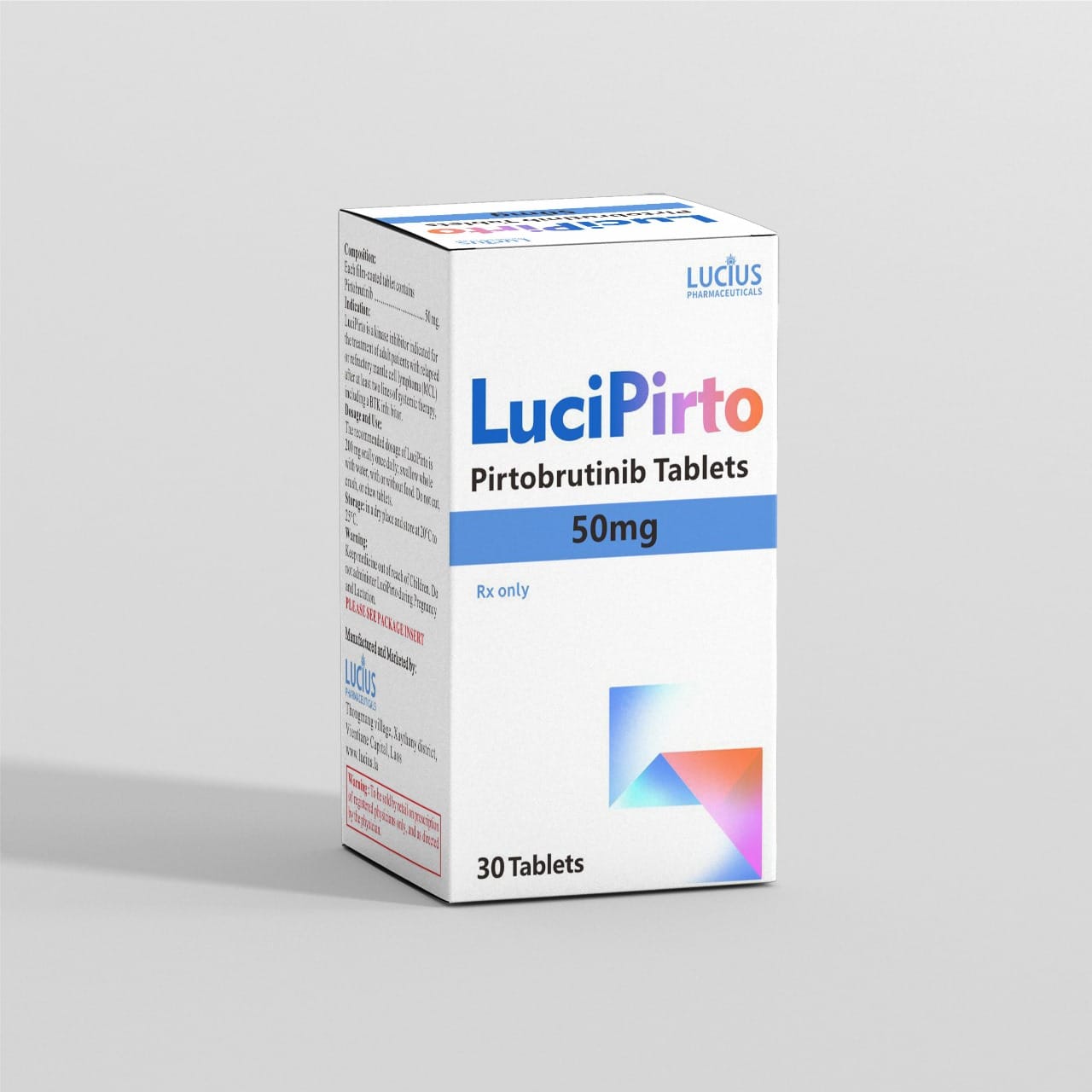 Thuốc Lucipirto Pirtobrutinib là một phân tử nhỏ và là chất ức chế không cộng hóa trị có tính chọn lọc cao của tyrosine kinase (BTK) của Bruton. Tính chọn lọc cao của nó có liên quan đến tỷ lệ ngừng thuốc thấp hơn do các tác dụng phụ và tỷ lệ rung nhĩ thấp hơn. Không giống như các chất ức chế cộng hóa trị BTK, chẳng hạn như ibrutinib, liên kết với axit amin cysteine 481 (Cys481) trong vị trí hoạt động của BTK, hoạt tính ức chế của pirtobrutinib được duy trì ngay cả khi có đột biến Cys481. Mặc dù các cơ chế kháng thuốc ức chế BTK cộng hóa trị vẫn chưa được làm sáng tỏ đầy đủ, nhưng có vẻ như sự hiện diện của đột biến Cys481 là lý do phổ biến nhất cho sự kháng thuốc ức chế BTK cộng hóa trị. Tuy nhiên, các đột biến khác có thể mang lại khả năng kháng thuốc ức chế BTK không cộng hóa trị như pirtobrutinib.