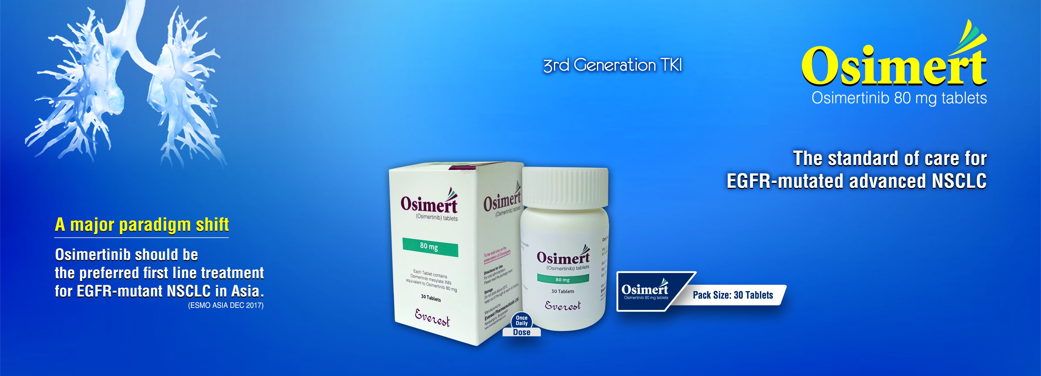 Thuốc Osimert là thuốc đích thế hệ 3 được chỉ định điều trị cho bệnh nhân ung thư phổi không phải tế bào nhỏ (NSCLC) đã kháng thuốc đích thế hệ 1 như Thuốc Tarceva, Thuốc Iressa, Thuốc Geftinat, Thuốc Erlonat…Những bệnh nhân được chỉ định thuốc Osimert phải là những bệnh nhân có đột biết protein T790M.