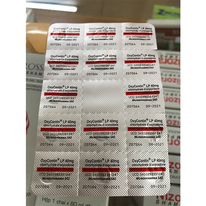Thuốc Oxycontin 40mg Oxycodone hydrochloride là một loại thuốc giảm đau opioid, được sử dụng để điều trị các cơn đau vừa đến nặng ở bệnh nhân ung thư và đau sau phẫu thuật. Để điều trị cơn đau dữ dội, cần sử dụng thuốc phiện mạnh.