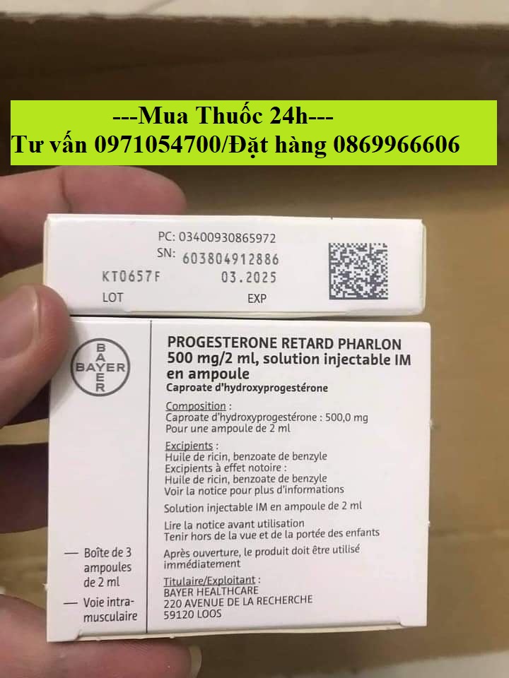 Progesterone Retard Pharlon là gì? Progesterone Retard Pharlon là một dạng progestin, một dạng nội tiết tố nữ nhân tạo được gọi là Progesterone Retard Pharlon. Hàm lượng: 500mg/2ml Hãng sản xuất: Bayer Progesterone Retard Pharlon được sử dụng để giảm nguy cơ sinh non (sinh dưới 37 tuần của thai kỳ) ở những phụ nữ mang thai một con (mang thai một con) và những người đã sinh non trong quá khứ. Thuốc Progesterone Retard Pharlon chỉ định cho đối tượng nào? Progesterone Retard Pharlon được sử dụng để giảm nguy cơ sinh non ở phụ nữ đã từng sinh một con non. Thuốc này sẽ không ngừng chuyển dạ sớm đã bắt đầu. Thuốc Progesterone Retard Pharlon không dùng cho phụ nữ đã mang thai nhiều hơn một lần. Thuốc Progesterone Retard Pharlon cũng có thể được sử dụng cho các mục đích không được liệt kê trong hướng dẫn thuốc Progesterone Retard Pharlon Caproate Injection USP được chỉ định ở phụ nữ không mang thai: để điều trị ung thư biểu mô tuyến tiến triển của hoàng thể tử cung (Giai đoạn III hoặc IV); trong việc quản lý vô kinh (nguyên phát và thứ phát) và chảy máu tử cung bất thường do mất cân bằng nội tiết tố trong trường hợp không có bệnh lý hữu cơ, chẳng hạn như u xơ tử cung hoặc ung thư tử cung; như một thử nghiệm để sản xuất estrogen nội sinh và sản xuất nội mạc tử cung bài tiết và bong vảy. Hotline 0869966606